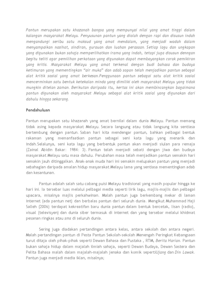 Jalan berbaris di atas tegalan. Di dekat angsa ada itik. Pelajar hari ini didedahkan kepada sumber sumber hiburan lain yang lebih menarik berbanding dengan bahan bacaan yang berunsur lebih ringan padat dan berbentuk hiburan lee kim hong 2005. Kelemahan yang keempat adalah pantun kian ketandusan di kalangan generasi muda terutama pelajar.