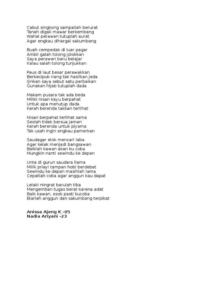 Kumpulan pantun tentang perdamaian. Apin membakar ujung cerutu membawa asap bersesak sesak. Buat kamu yang hobi merangkai pantun atau mau baca baca pantun sepertinya perlu gabung dengan komunitas pantun betawi nih. Hobi pantun berisi kumpulan pantun cinta pantun lucu pantun romantis pantun nasehat pantun anak anak pantun jenaka pantun gombal contoh pantun lengkap.