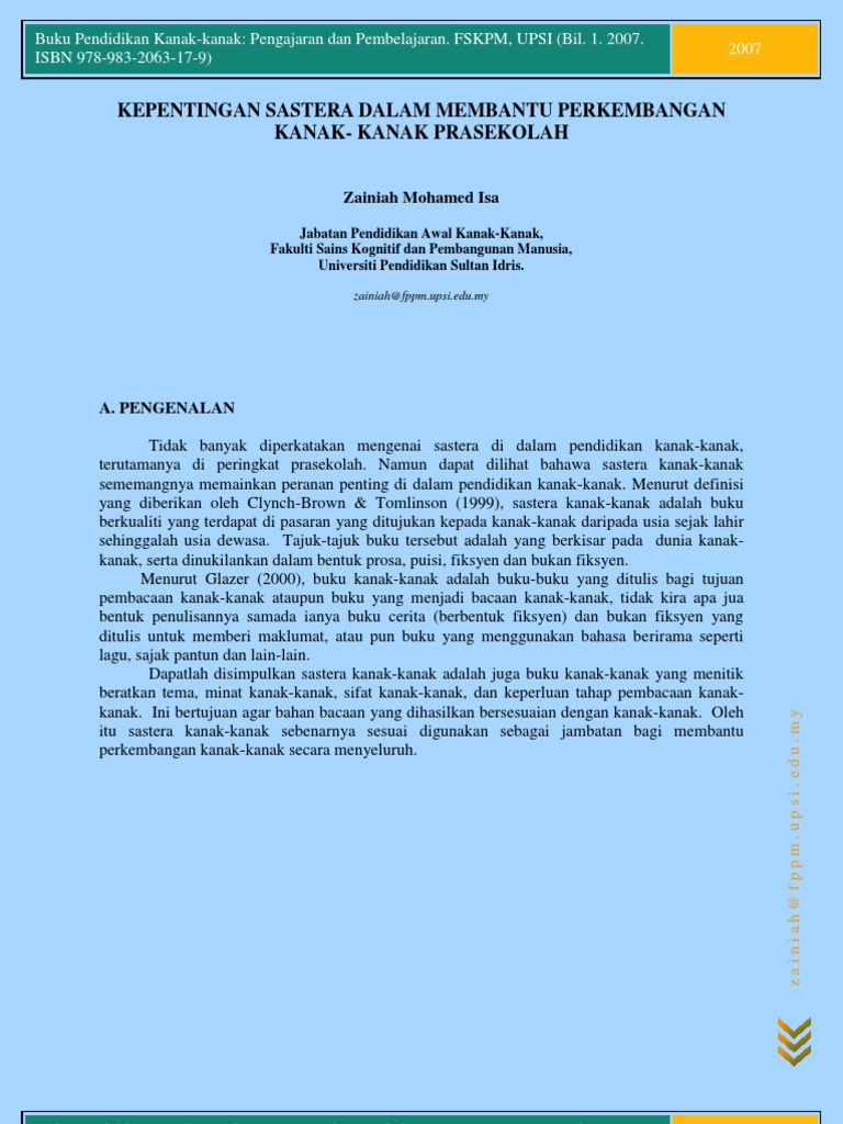55863213 Kepentingan Sastera Dalam Membantu Perkembangan Kanak Kanak Prasekolah