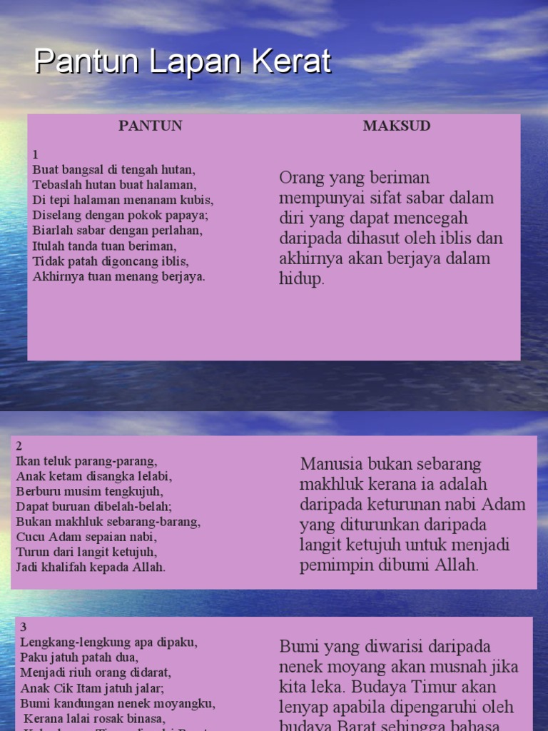 Pada pantun diatas kita dapat melihat bahwa kata kata belakangnya sama sama ya sehingga dapat dianggap sebagai pantun a a a a. Setiap baris terdiri dari 8 12 suku kata. Terdiri dari empat bait. Setiap bari terdiri dari 8 12 suku kata.