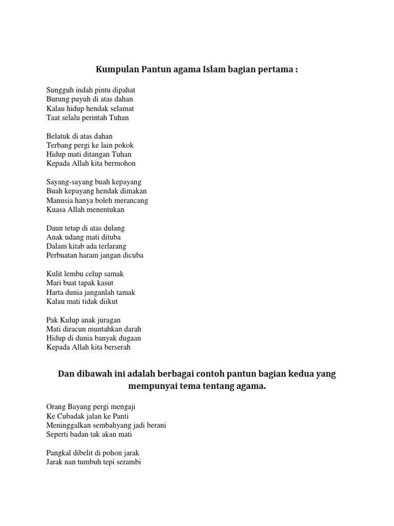 Anak ayam turun sepuluh mati seekor tinggal sembilan bangun pagi sembahyang subuh minta ampun kepada tuhan pantun agama.