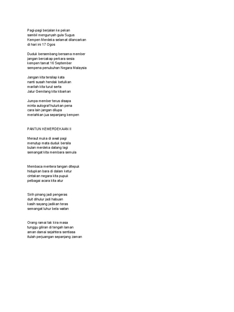 Jalan jalan ke kota padang pergilah adik dengan abang angin bertiup dengan sedang layang layang pasti terbang bunyi kereta tut tut tut terdengar hingga ci salak.