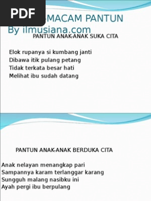 Hal lain yang menarik dari lagu ini. Pantun anak merupakan salah satu jenis pantun yang dibedakan berdasar usianya. Pantun anak anak tidak hanya orang dewasa anak anak kerap kali mengekspresikan apa yang dirasakan entah itu bahagia atau sedih dengan banyak cara.