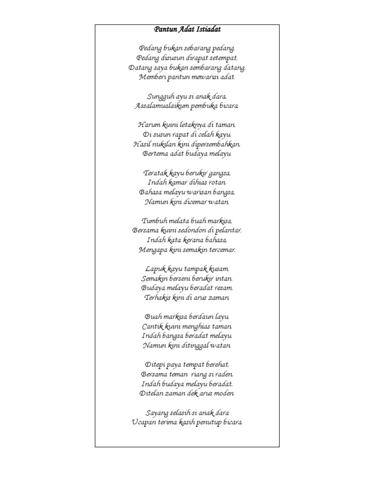 Pantun assalamualaikum melayu. Pantun pembuka salam sebuah pantun menjadi sebuah hal yang sering digunakan untuk mengekspresikan sebuah kata kata baik untuk pidato maupun yang lainnya. Temasya pantun norma baharu menemukan pasukan jentayu hs vs gemersik hs tarikh. Terlebih lagi dengan rima yang enak didengar pantun menjadi makin menyenangkan untuk diucapkan dan didengarkan. Silakan disimak dan semoga bermanfaat.