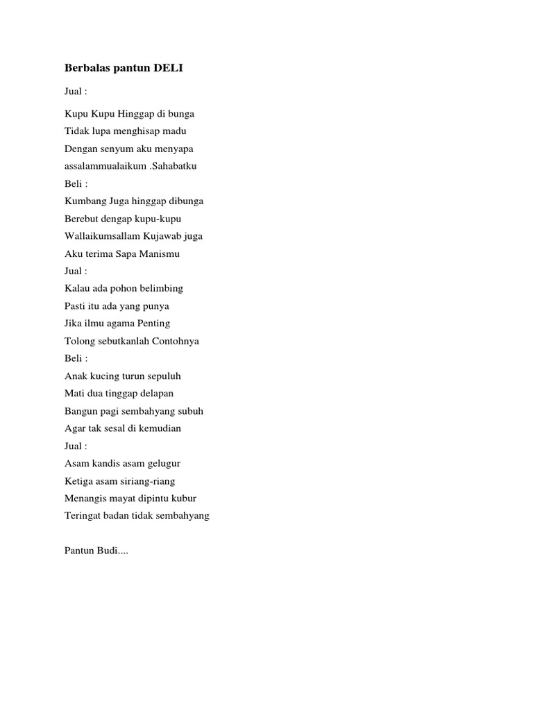 Berbalas pantun agama islam. Seperti pantun jenaka dengan tema cinta pantun yang sangat lucu hingga pantun berbalas. Di pernikahan adat melayu di berbagai daerah berbalas pantun merupakan hal yang biasa dilakukan. Pengertian pantun dari berbagai daerah pantun dalam pengertian sederhana adalah salah satu jenis puisi lama yang dikenal secara luas di seluruh nusantara.