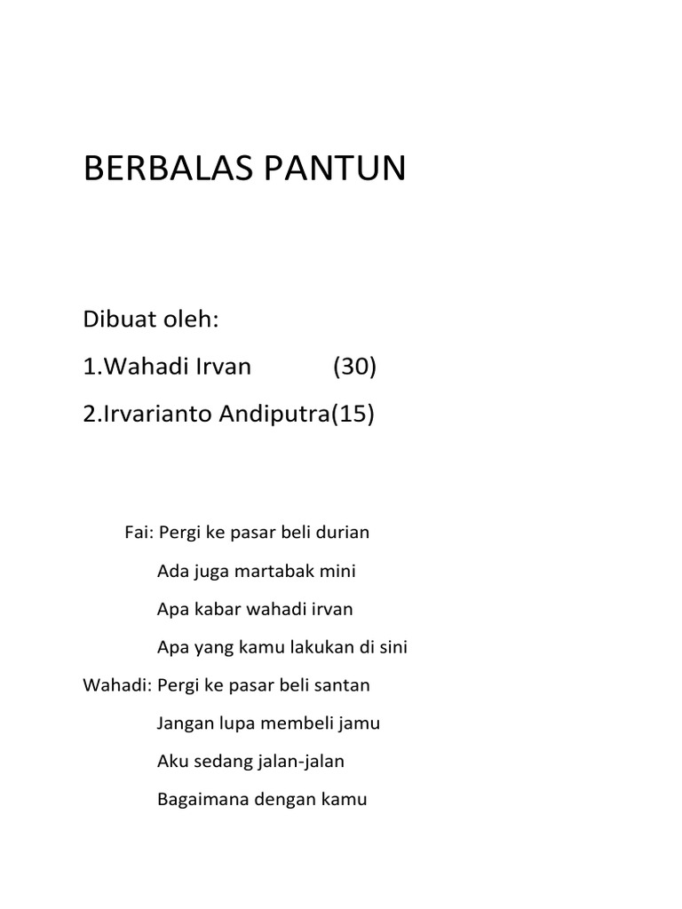 Pantun berbalas kabar. Salah satu manfaat yang akan kita dapatkan jika bermain pantun berbalas adalah membuat daya pikir seseorang terutamanya generasi mudah lebih cerdas dalam memikirkan pantun apa yang akan digunakan untuk menjawab pantun dari lawan. Pergi kepasar naik sepeda tidak lupa membeli jajan sahabat sejati selamat pagi juga kujawab sapamu dengan senyuman. Berbalas pantun selamat datang. Bbr pangkalpinang babelreview co id babel review berbalas pantun kembali hadir menyapa pembaca untuk ikut menjaga kearifan lokal yang ada di bangka belitung bagi pembaca yang gemar berbalas pantun silakan kirim pantunnya ke nomor wa.