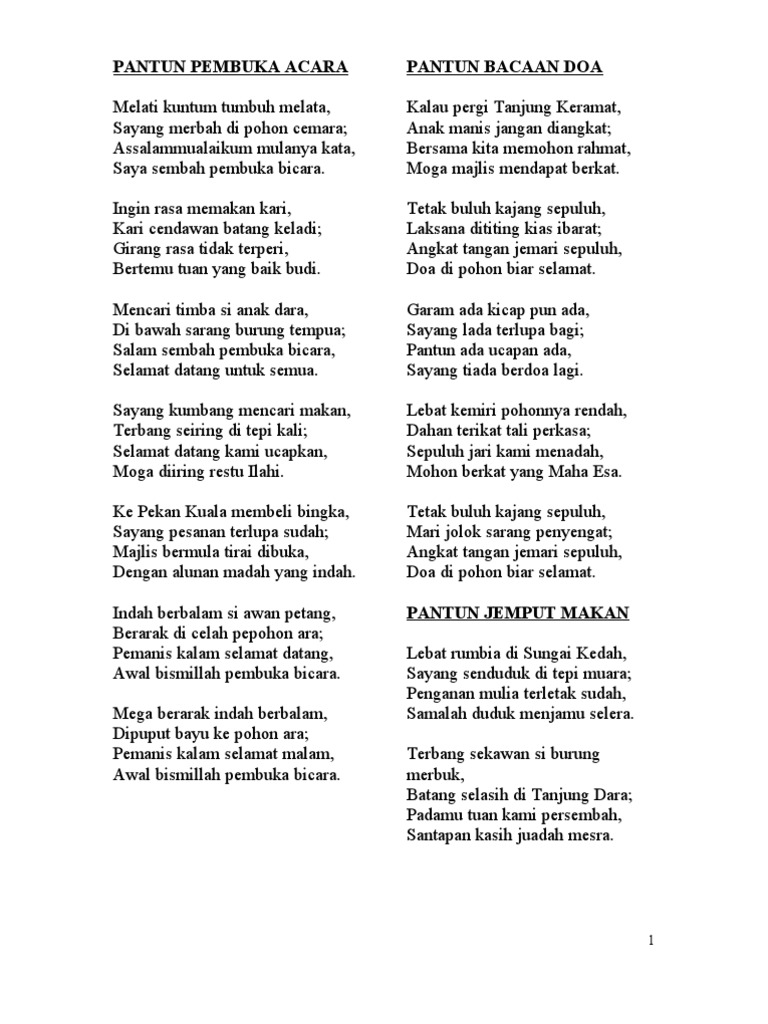 2 berbalas pantun nasehat agama yang menyejukkan. 3 berbalas pantun cinta yang bikin baper. Pantun pembuka acara dapat menjadi pilihan terbaik yang bisa dipakai untuk membuka sebuah acara. Artikel terkait 35 contoh pantun agama islam.