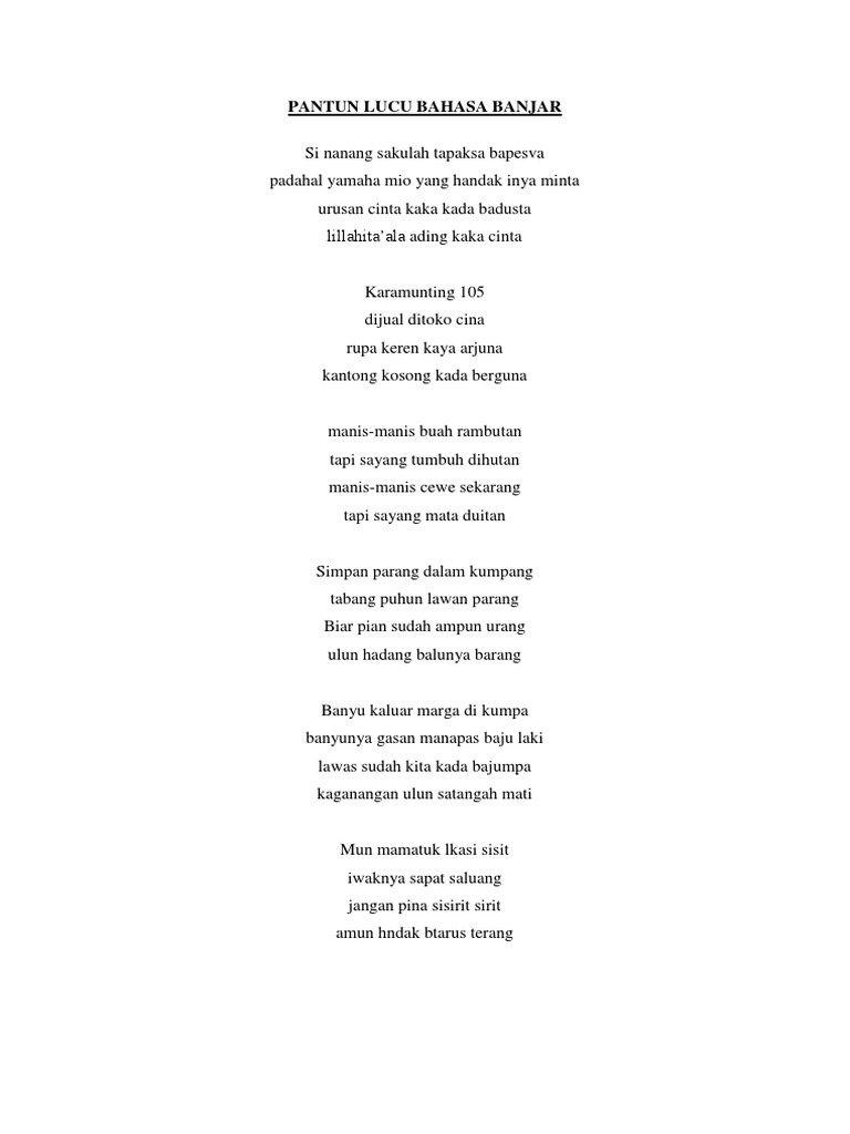 150 Koleksi Pantun Bahasa Banjar Lucu Bikin Ngakak Mediasiana Com Media Pembelajaran Masakini