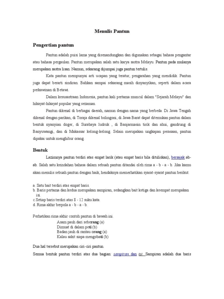 Setiap baris terdiri dari 8 12 suku kata. Di indonesia sendiri pantun dikenal dalam bermacam macam istilah sesuai dengan daerah masing masing. Asalkan anda dapat memahami penggunaan tanda petik atas atau biasa disebut apostrope pada sebuah kata dalam bahasa toraja dan dijamin anda akan mudah dalam memahami pelajaran bahasa toraja. Pantun dikenal di berbagai daerah di indonesia namun setiap daerah mempunyai istilah sendiri dalam menyebut karya sastra ini.