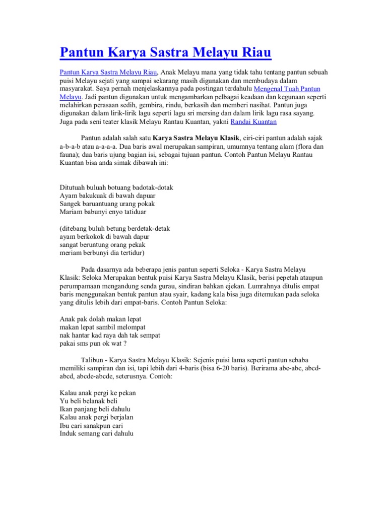 Saran kita bisa memperkenalkan talibun yang sekarang jarang didengar oleh kalangan generasi muda zaman sekarang dengan misal mengajarkan talibun di mata pelajaran bahasa indonesia dan melestarikannya agar tetap utuh sebagai karya sastra puisi lama dari. Berasal dari tamil india. Jika rima pantun pantun a b a b maka talibun memiliki rima a b c a b c dan seterusnya. Baris pertama dan baris kedua biasanya tumpuan sampiran saja dan baris ketiga dan keempat merupakan isi.