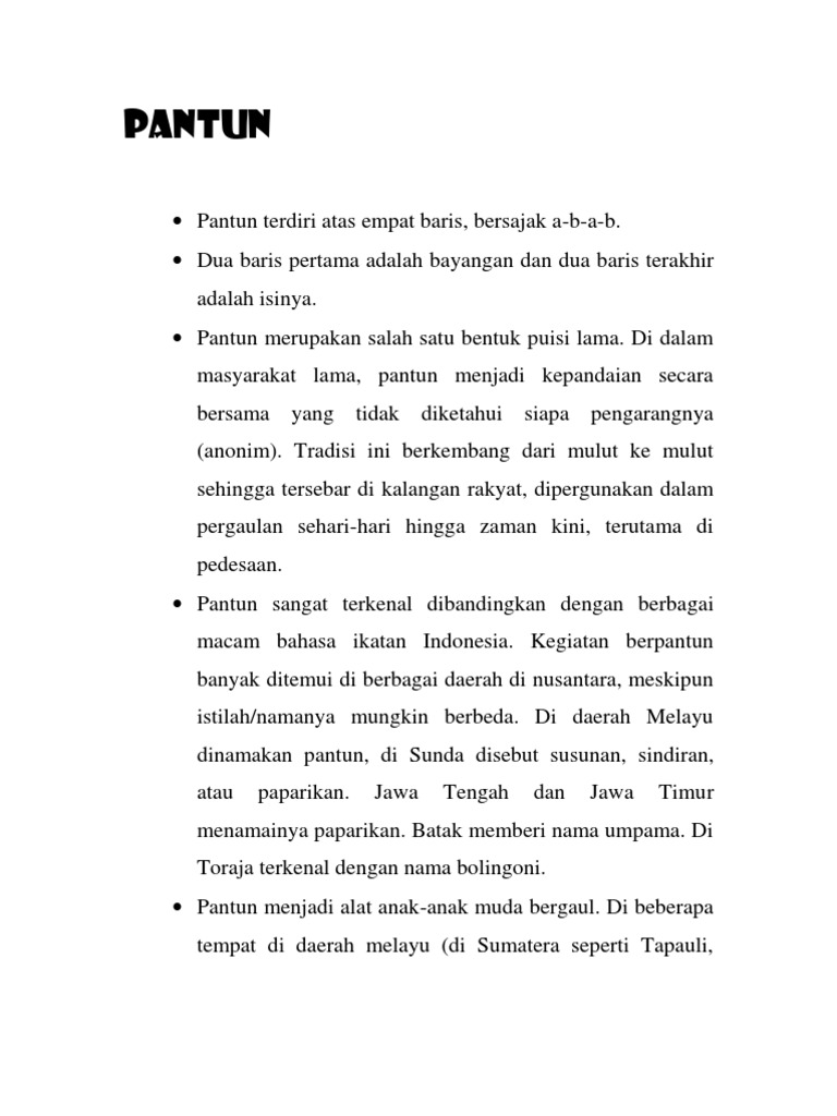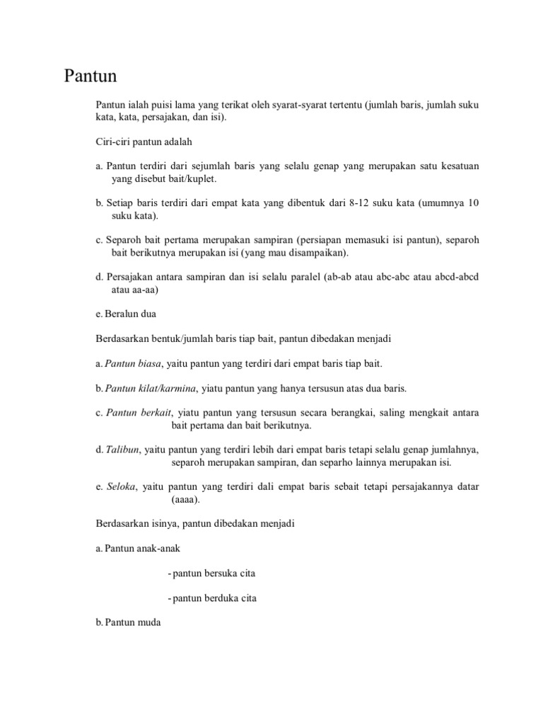 Pada kesempatan kali ini pengajar co id akan membuat artikel mengenai contoh pantun yuk disimak ulasannya dibawah ini. Memiliki sajak lurus a a. Selain itu karmina ini merupakan salah satu ciri atau corak dari sastra melayu. Baris pertama dan kedua pantun disebut.