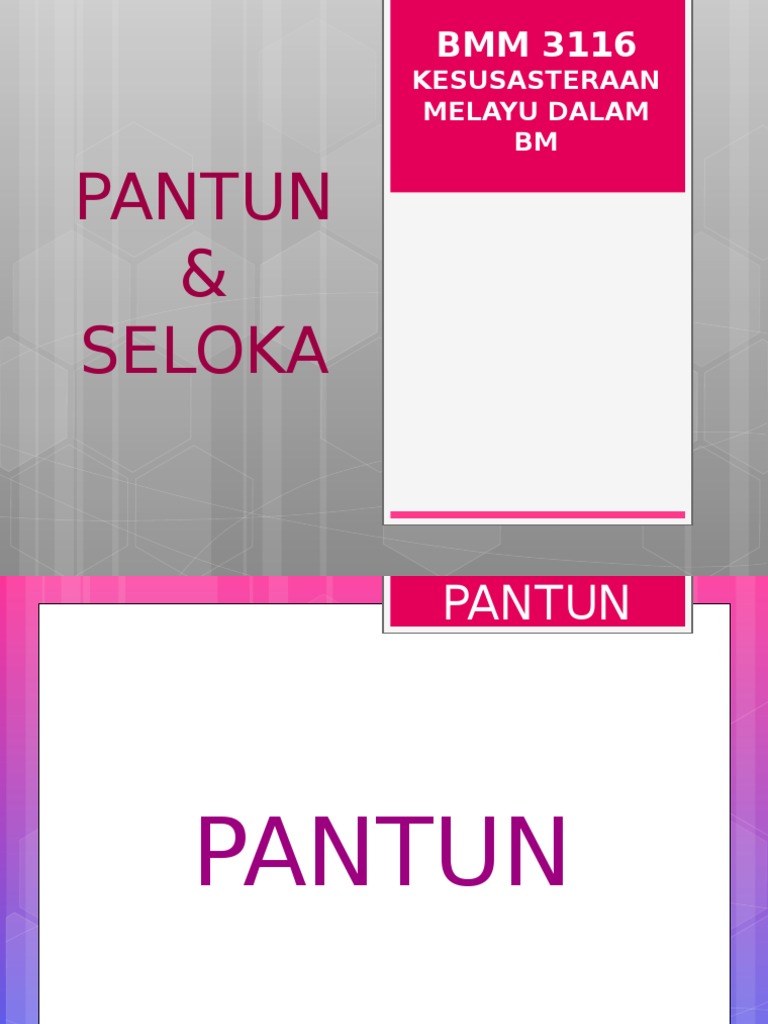 Pantun merupakan salah satu jenis puisi lama yang dikenal dalam kesusastraan nusantara.