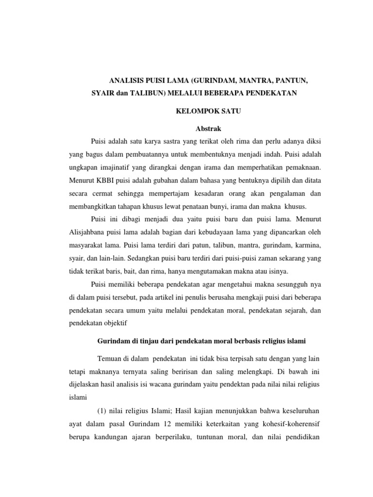 Pantun Gurindam Talibun Adalah Contoh Puisi