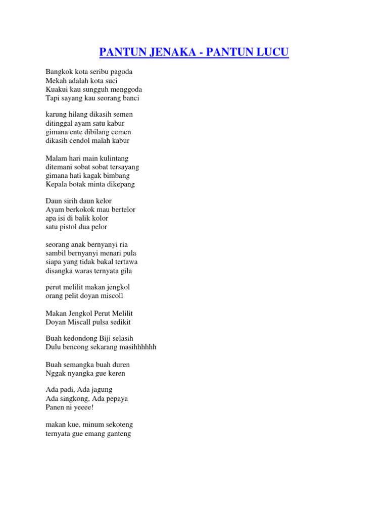 Berikut ini adalah 40 pantun lucu jenaka yang dapat menghiburmu dan orang di sekitarmu seperti dirangkum dari romadecade mypurohith brilio sabtu 31 10 2020. Pantun lucu jenaka 1. Atau bisa disebut sebagai pantun humor atau gokil untuk saat ini. Jadi pantun jenaka adalah pantun yang lucu.
