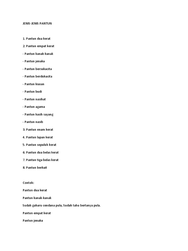 Menurut para ahli pengertian pantun sangat beragam. Saya sudah menyiapkan 20 jenis pantun yang masing masing mempunyai 10 contoh pantun yang bisa kalian buat inspirasi untuk membuatnya sendiri atau untuk dijadikan bahan tugas. 200 contoh pantun jenaka cinta teka teki nasehat bijak bahasa jawa 08 08 daftar isi. Dihalaman ini akan dibahas tentang contoh pantun nasehat baik pantun jenaka pantun cinta pantun lucu pantun agama atau pantun teka teki akan tetapi hanya beberapa orang yang mahir dalam membuat pantun adapun yang lain kualitasnya masih di bilang cukup.