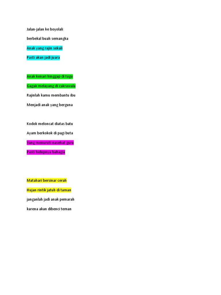 Pantun tentang nasehat ini sering digunakan oleh orang tua kita dahulu dalam menyampaikan ajaran moral pada anak anak muda. Jika kau tidak bisa menjadi mereka setidaknya kau harus menjadi dirimu sendiri yang mau membangkitkan senyumannya di masa masa 15hariceritaenergi aku sudah banyak cerita tentang energi dari alam yang bisa kita manfaatkan. Pantun bertema anak begitu luas isinya. Keberadaan pantun nasehat membuat pesan tersampaikan secara menyenangkan serta mudah dipahami.