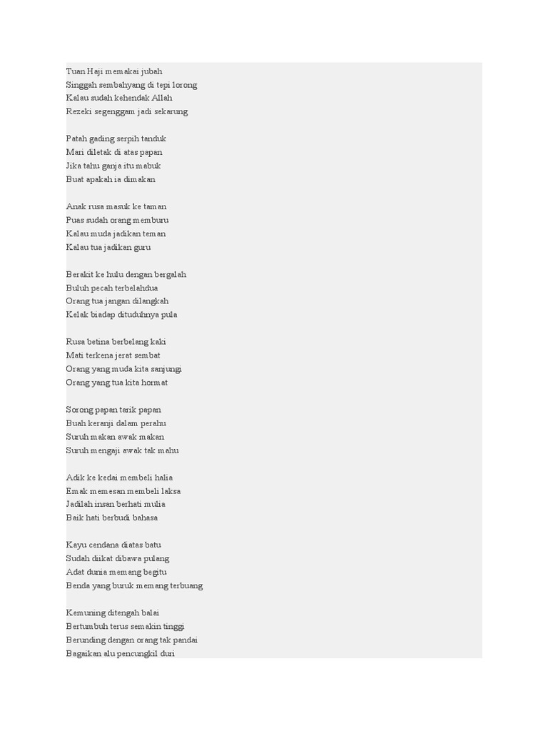 Pantun sekolah ramah anak. Jalan jalan ke kota padang pergilah adik dengan abang angin bertiup dengan sedang layang layang pasti terbang bunyi kereta tut tut tut terdengar hingga ci salak. Pantun akan jauh lebih efektif digunakan dibandingkan dengan sekedar kata kata biasa karena di dalam pantun biasa terdapat bahasa kiasan yang mengandung arti mendalam. 1 1 1 anak ayam belajar berkokok suaranya meniru ayam jantan masih kecil janganlah merokok nanti besar jadi penyakitan. Contoh pantun anak suka cita.