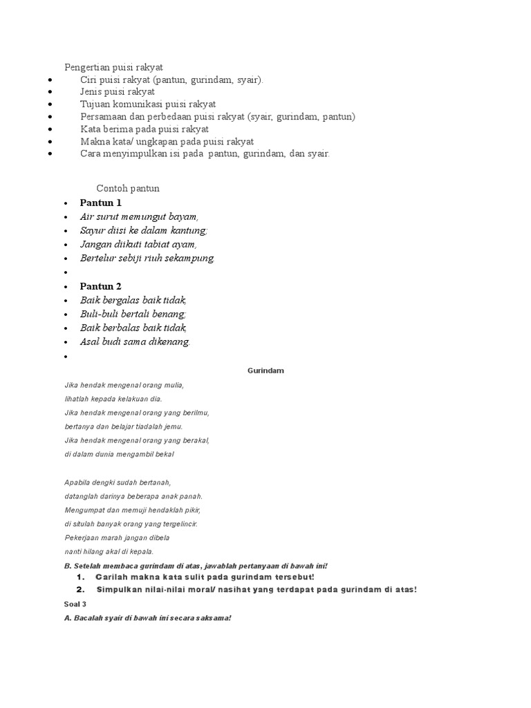Sebelum membahas lebih lanjut mengenai persamaan dan perbedaan pantun syair. Suku kata gurindam syair. Gurindam adalah jenis puisi lama yang hanya terdiri dari dua baris di dalam satu baitnya. 17 contoh pantun anak anak beserta maknanya akan diuraikan secara lengkap pada materi pelajaran bahasa indonesia sebagai berikut ini.
