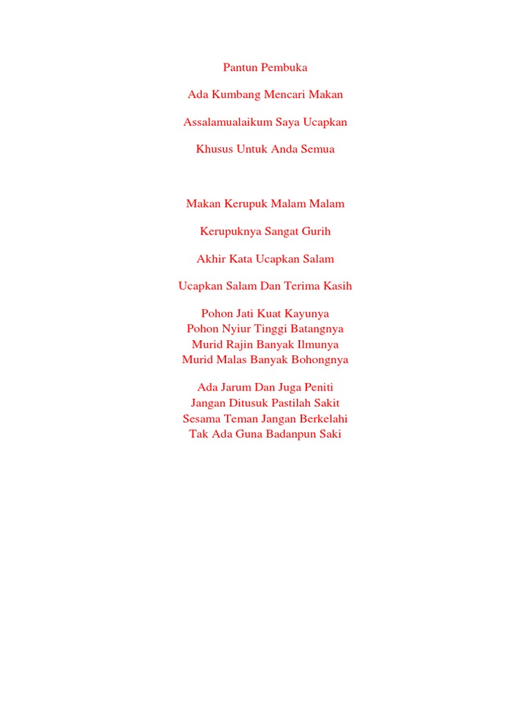 Pantun assalamu alaikum assalamu alaykum adalah kata yang biasa diucapkan oleh umat muslim ketika bertemu seseorang berkunjung kerumah maupun pembuka dan penutup salam saat pidato. 50 pantun tentang guru. Pantun penutup pidato salah satu syair dalam karya seni yang ditampilkan dalam puisi kuno dengan ciri khas memiliki 4 baris sajak a b a b yang terdiri dari sampiran dalam bentuk isi puisi sebagai bahan yang dapat digunakan untuk menghibur pada saat akan menutup ceramah atau pidatio. 50 pantun penutup pidato.