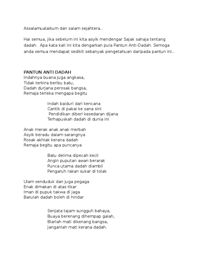 Pantun assalamualaikum didalam islam kita diajarkan untuk memiliki akhlak atau perilaku yang baik. Rasa ketakutan dan kekhawatiran akan bahaya virus corona tidak membatasi orang untuk tetap berkreasi. Kumpulan pantun assalamu alaikum berbalas wa alaikumsalam all by anisayu sahabat. Terbukti ada banyak sekali puisi dan pantun tentang virus corona yang dapat kita jumpai di media sosial.